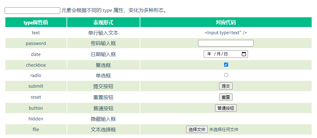- type=”checkbox”, “radio”, “file”,为输入相关联的值